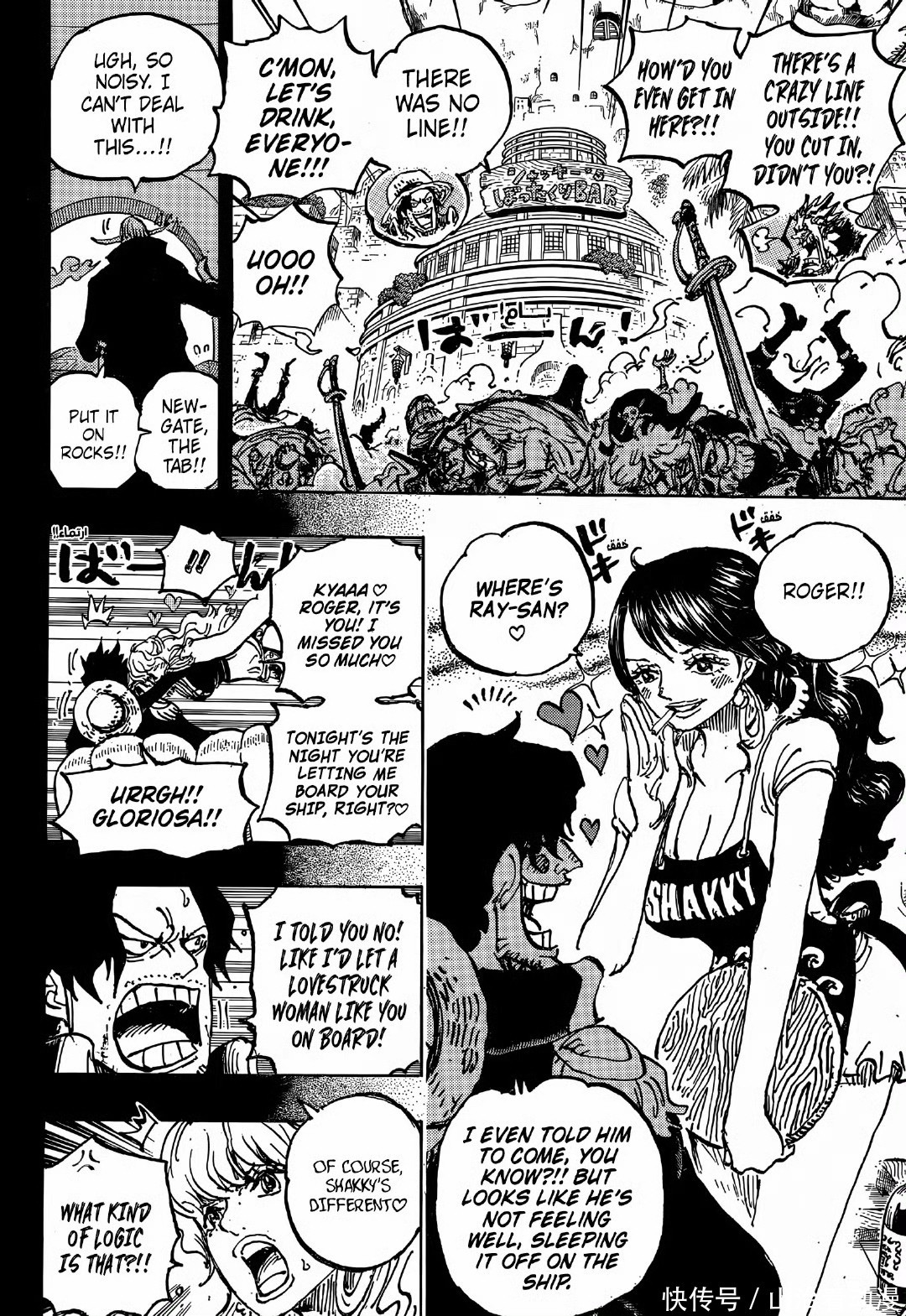 洛克斯海贼团的回忆当中,罗杰海贼团也出现在蜂巢岛,这是洛克斯海贼团的老巢,罗杰海贼团根本不怕洛克斯,两人一见面差点就打起来。毕竟罗杰把酒吧外面的海贼都干掉了,这让洛克斯非常不爽,夏琪在酒吧立下规矩,不能在酒吧里闹事。
